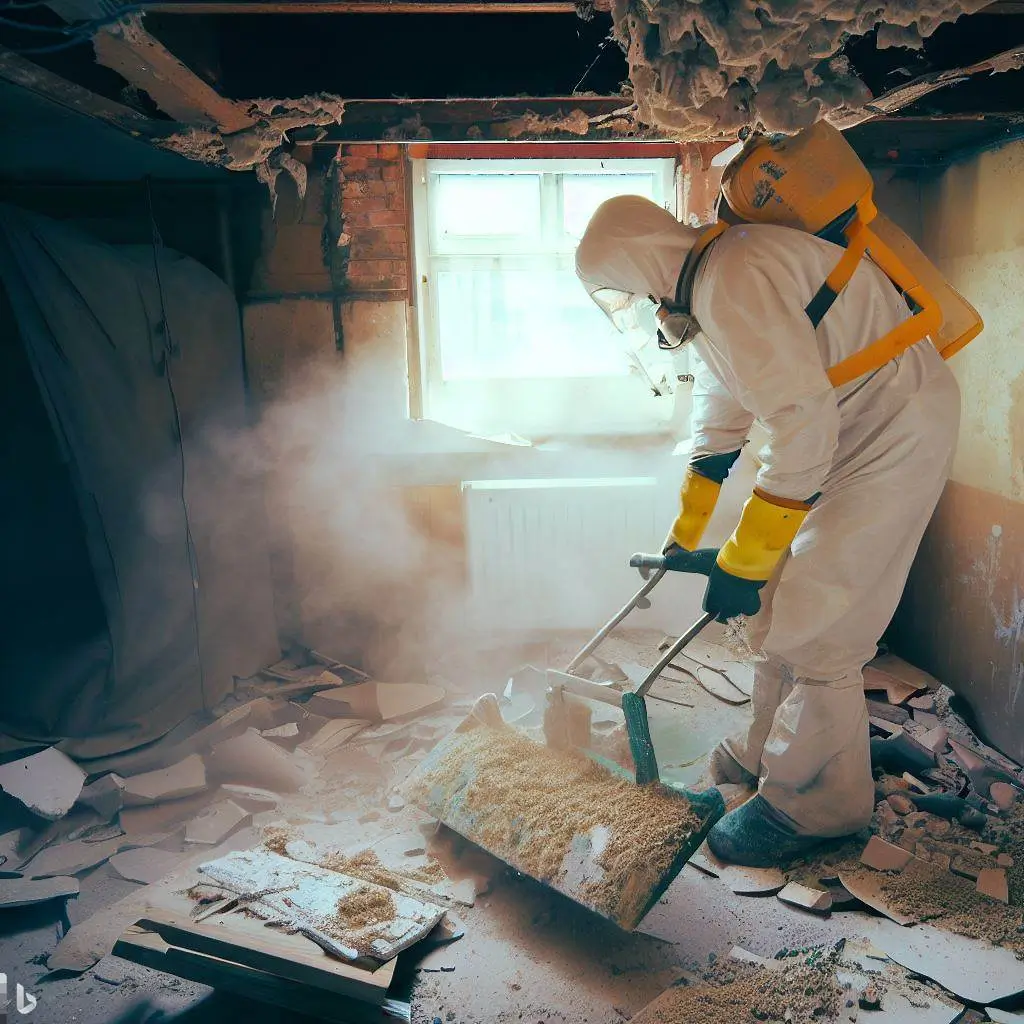 - We begin by sealing the work area with plastic sheeting and negative air pressure machines.